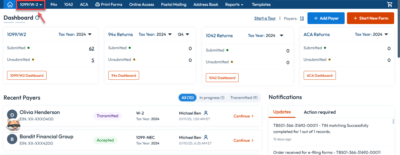 Get Answers Support Tax Filings & Payments W2 Form W-2 How to delete the in-progress W-2 forms? To delete your in-progress W-2 forms, follow these steps: Step 1: Sign in to your TaxBandits account. Step 2: Navigate to the '1099/W2 Dashboard'. Step 3: Select the payer whose tax forms you need to delete. Step 4: Click the 'Unsubmitted tab'. Step 4: In the 'Ready to File' section, you can find the list of in-progress forms associated with the payer. Step 5: Select the form you want to delete and click the 'Bulk Delete' button. Step 6: A confirmation pop-up will be displayed. Click on 'Yes, I want to Delete' to delete the In-Progress W-2 form for a selected employee/recipient. Was this helpful? Yes No Related Questions Is it possible to download the draft copies of W-2? How to bulk upload Form W-2? How do employees access their W-2s online? Go to Home Page Need more help? Get in touch with our dedicated support team Contact Us (704) 684-4751 support@taxbandits.com Sign Up for a FREE TaxBandits Account! The Smart CPA Choice Register Now Already have an account? Sign in