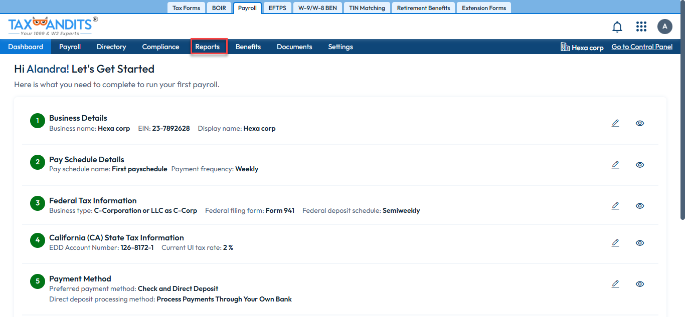 Get Answers Support Payroll Reports Paystub report Where can I download my paystubs? Once you have processed your payroll, you can download the paystub report. Follow the steps to download the paystubs. Step 1: Sign in to your TaxBandits Payroll account. Step 2: In the dashboard, navigate to the ‘Reports’ section to view and download the paystubs for the processed payroll. Step 3: You can apply the necessary filters and click on ‘Apply’ to download the paystubs. Step 4: You find the list of payroll processed based on the applied filters. On clicking ‘View all reports, ’ you can download all the paystubs. Step 5: To download the paystub for the specific pay period, click on View Specific Paystub. Step 6: You can download the required paystubs by clicking on the ‘download icon.’ Was this helpful? Yes No Related Questions How can I generate my payroll summary report? How can I download my Payroll Journal report? Go to Home Page Need more help? Get in touch with our dedicated support team Contact Us (704) 684-4751 support@taxbandits.com Sign Up for a FREE TaxBandits Account! The Smart CPA Choice Register Now Already have an account? Sign in
